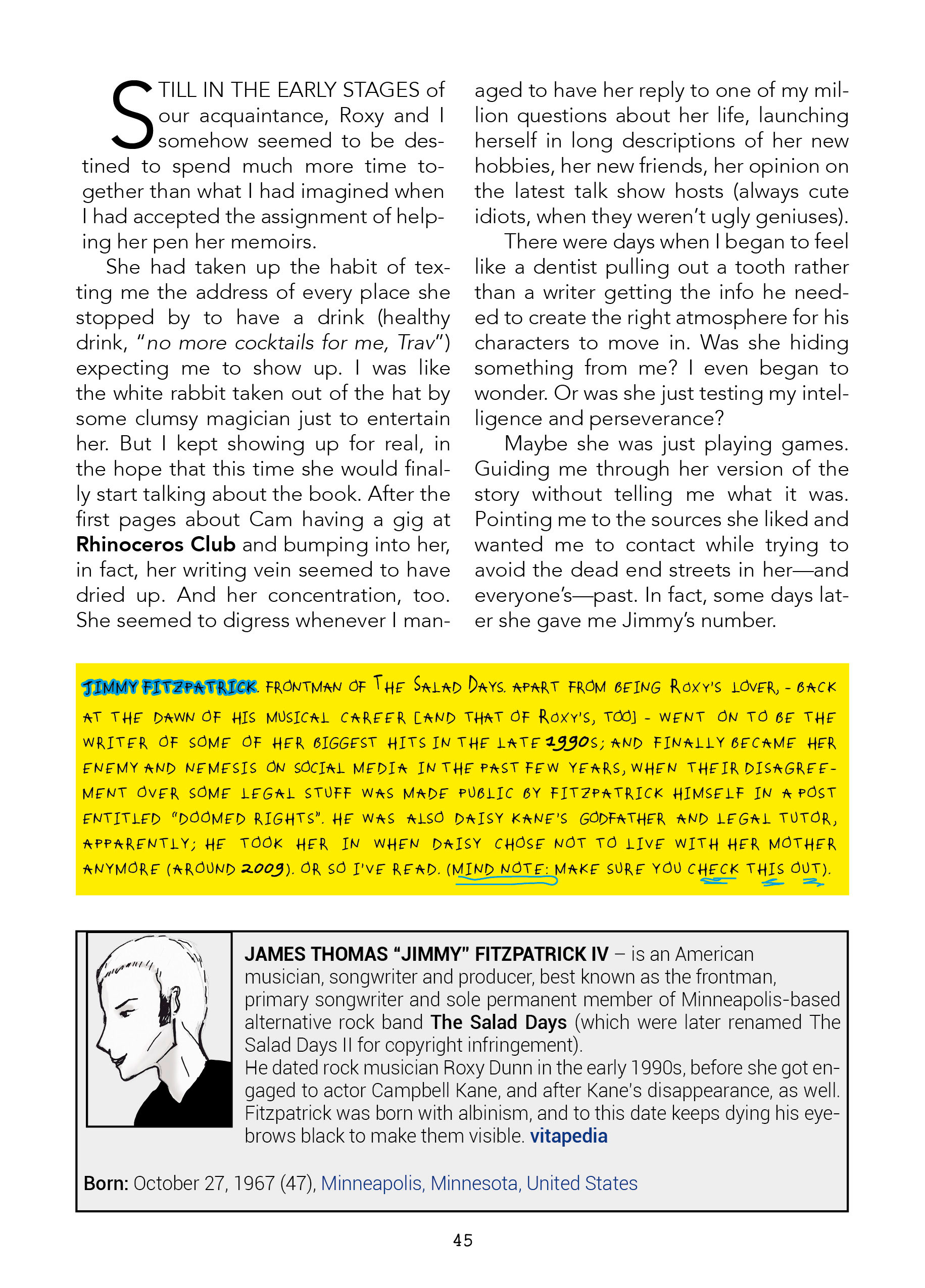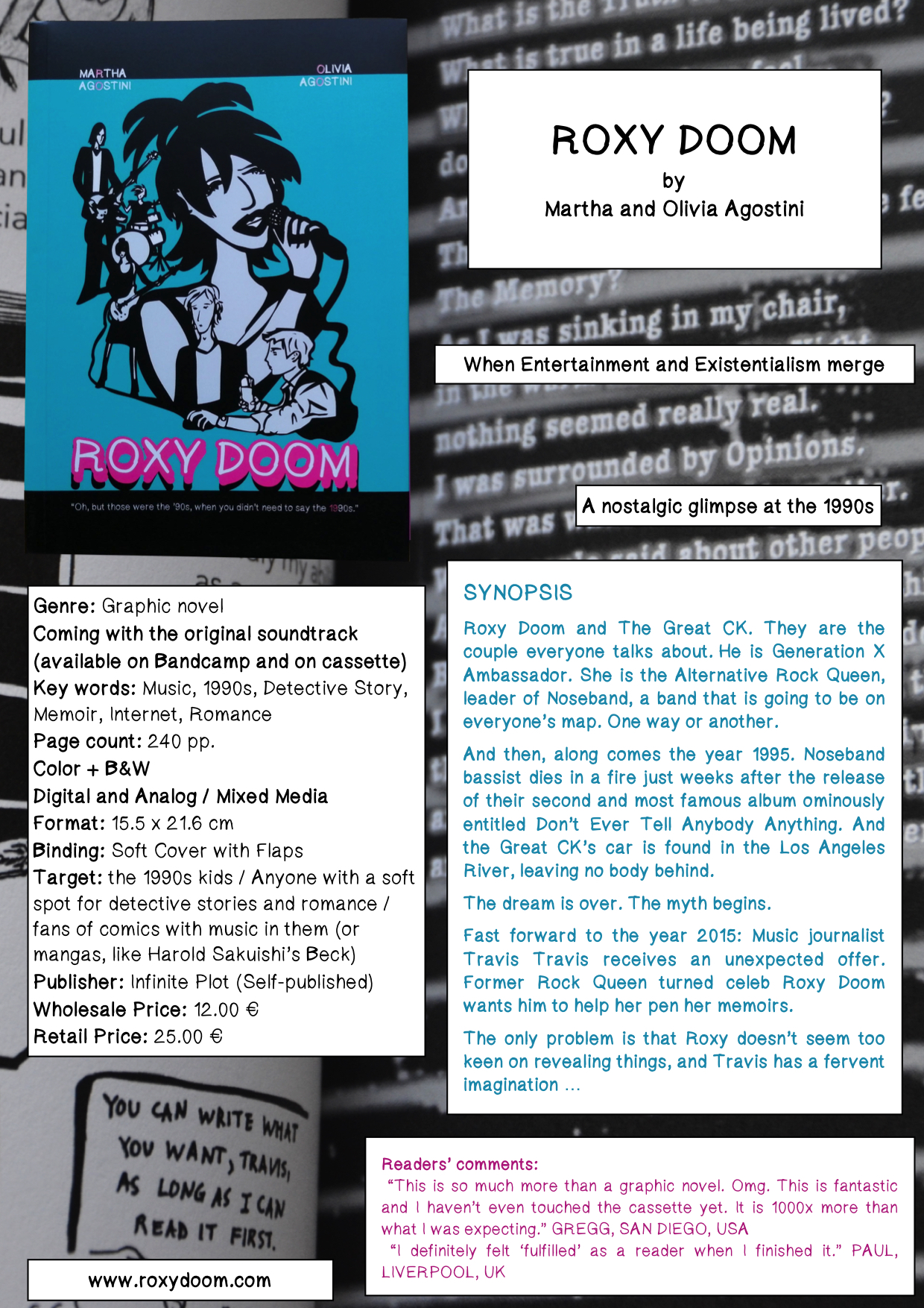 When Music journalist Travis Travis is hired to help celeb Roxy Doom write her memoirs, all the conundrums from her past and the legendary 1990s start leaking out of the dark.